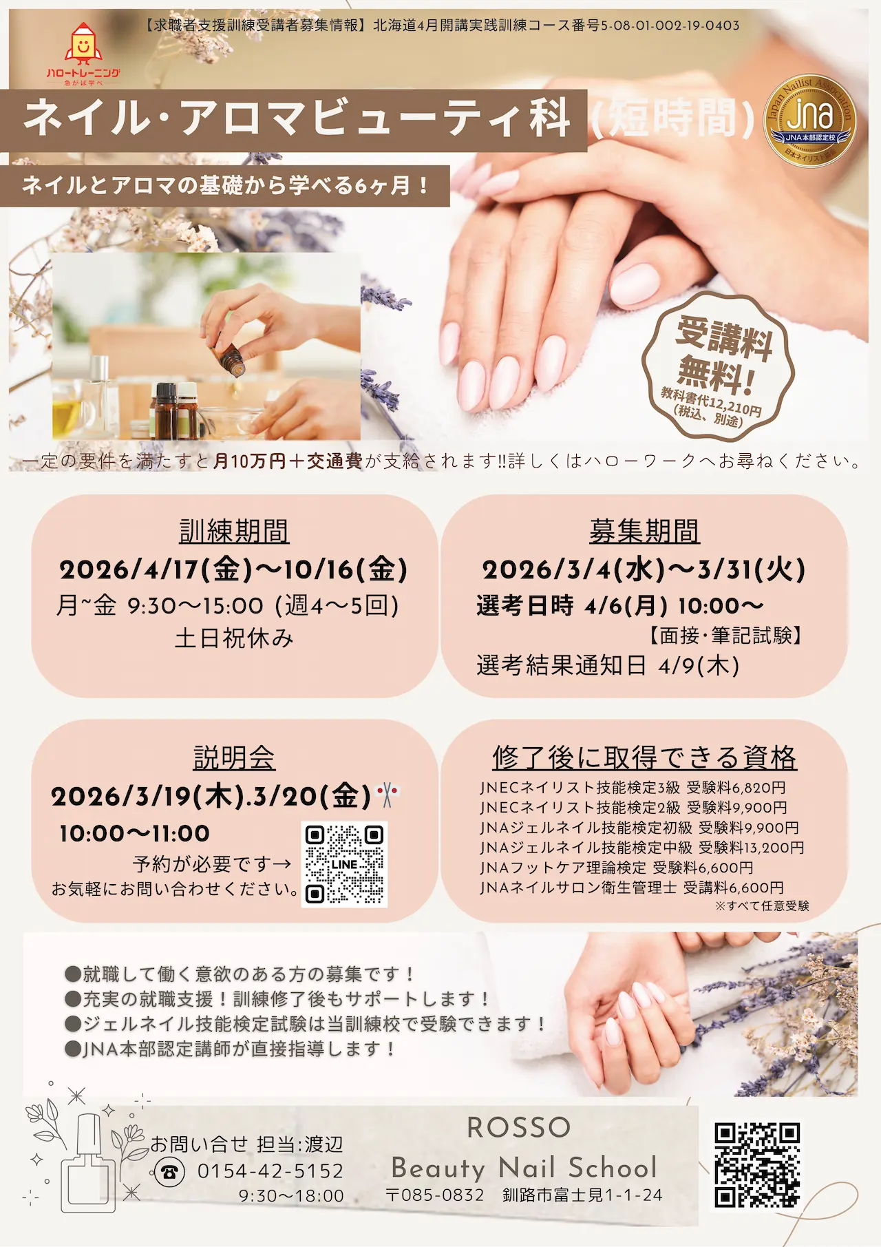 Nail School釧路のJNA認定のネイルスクール ROSSO